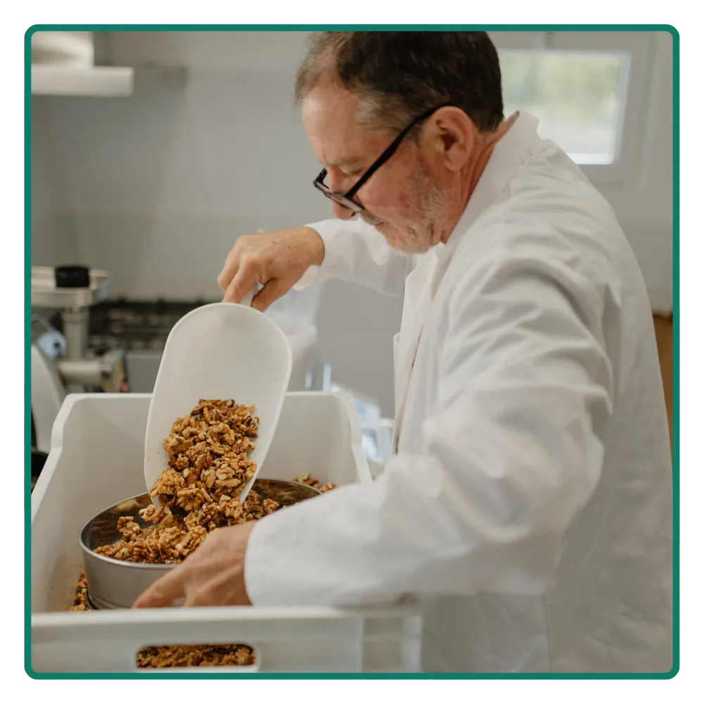 En tant que producteur local engagé, nous maîtrisons l'ensemble du processus, de nos vergers jusqu'à vous. Notre gamme variée, issue de la noix bio, comprend des cerneaux savoureux, de l'huile artisanale pressée à froid et des confiseries gourmandes. Choisir nos produits, c'est soutenir une agriculture durable et savourer le meilleur de notre terroir, directement du producteur à votre assiette.